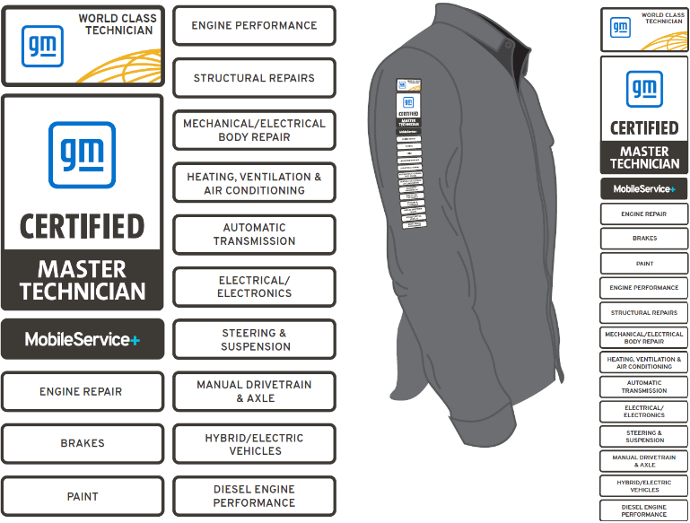 A technician can achieve GM World Class Technician status in the Mechanical area. It’s achieved when a technician successfully completes all related training and the appropriate Master Technician Certifications.