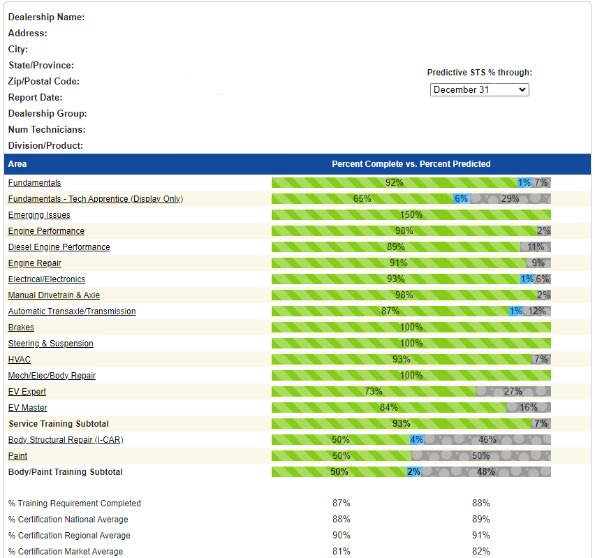 - Easily identify which technician needs what training to help your dealer reach its STS goals