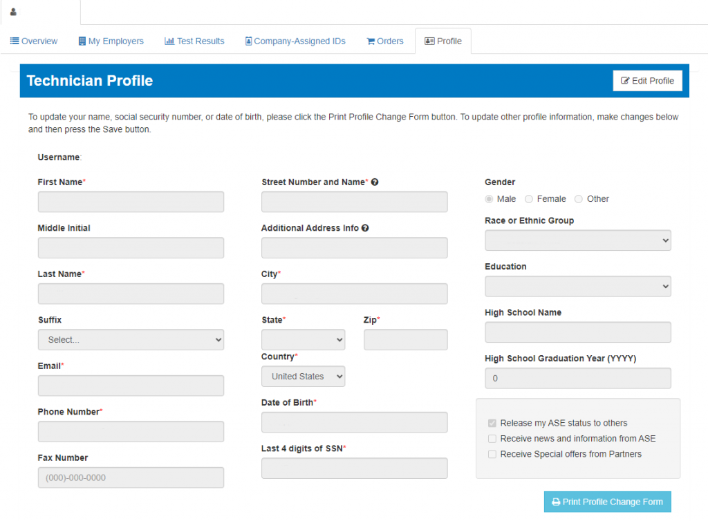 - Check the box for “Release my ASE status to others” found by selecting your name in the upper left-hand corner and selecting User Profile. Select the Profile tab, select the Edit Profile button and check the “Release my ASE status to others” box, and select Save.