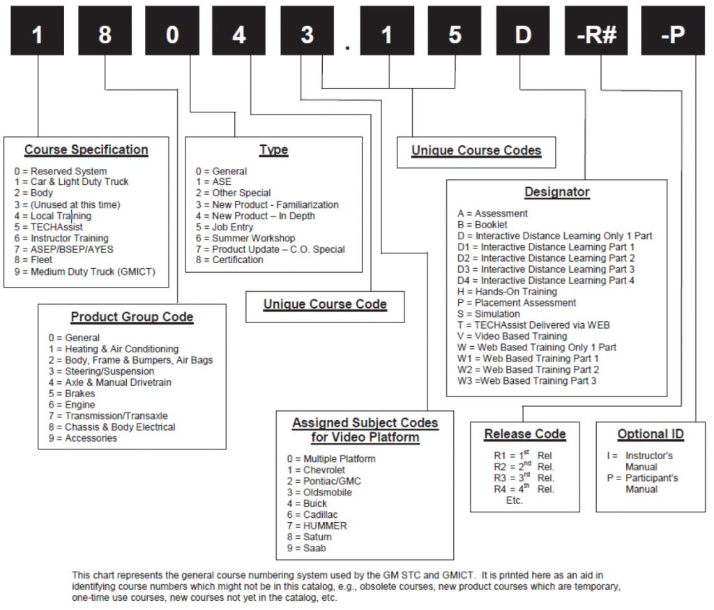 GM STC training course numbers use the following system: